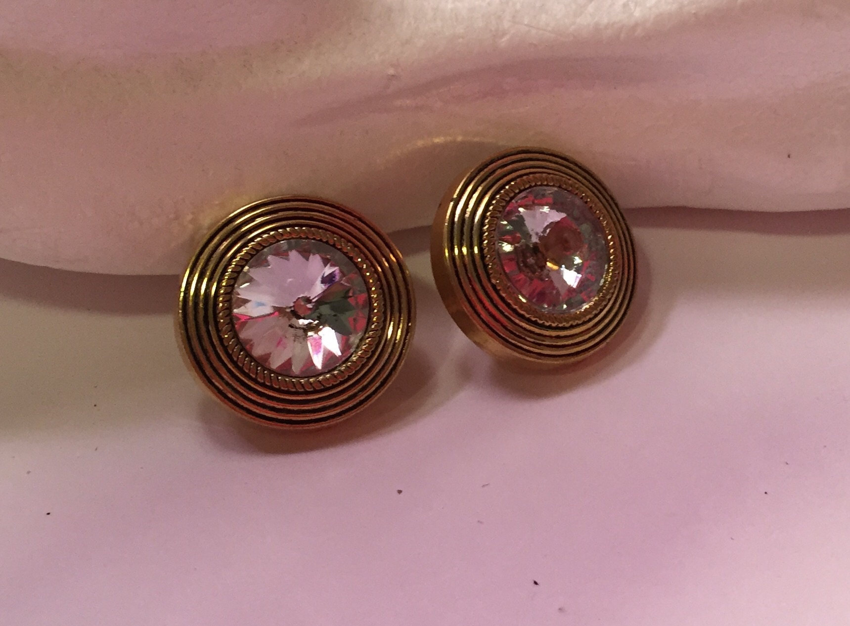 -Vintage pendent, gold metal base fashion earrings. -Fashionable statement earrings. -One of a kind piece. -Custom and handmade. -Made as in picture.