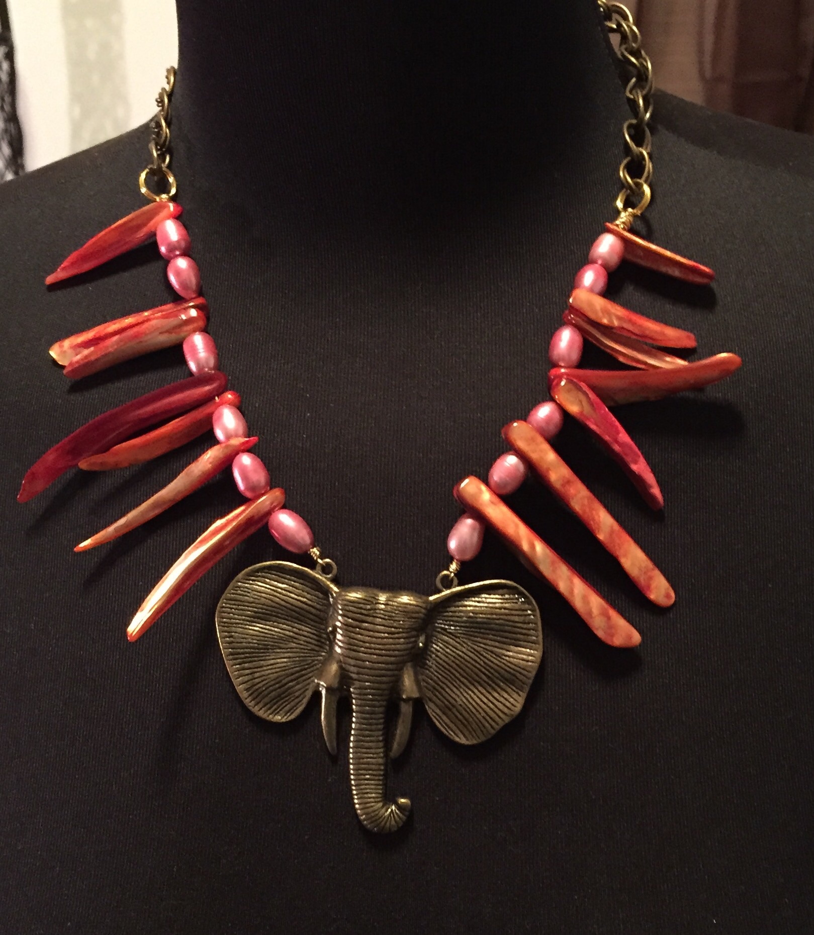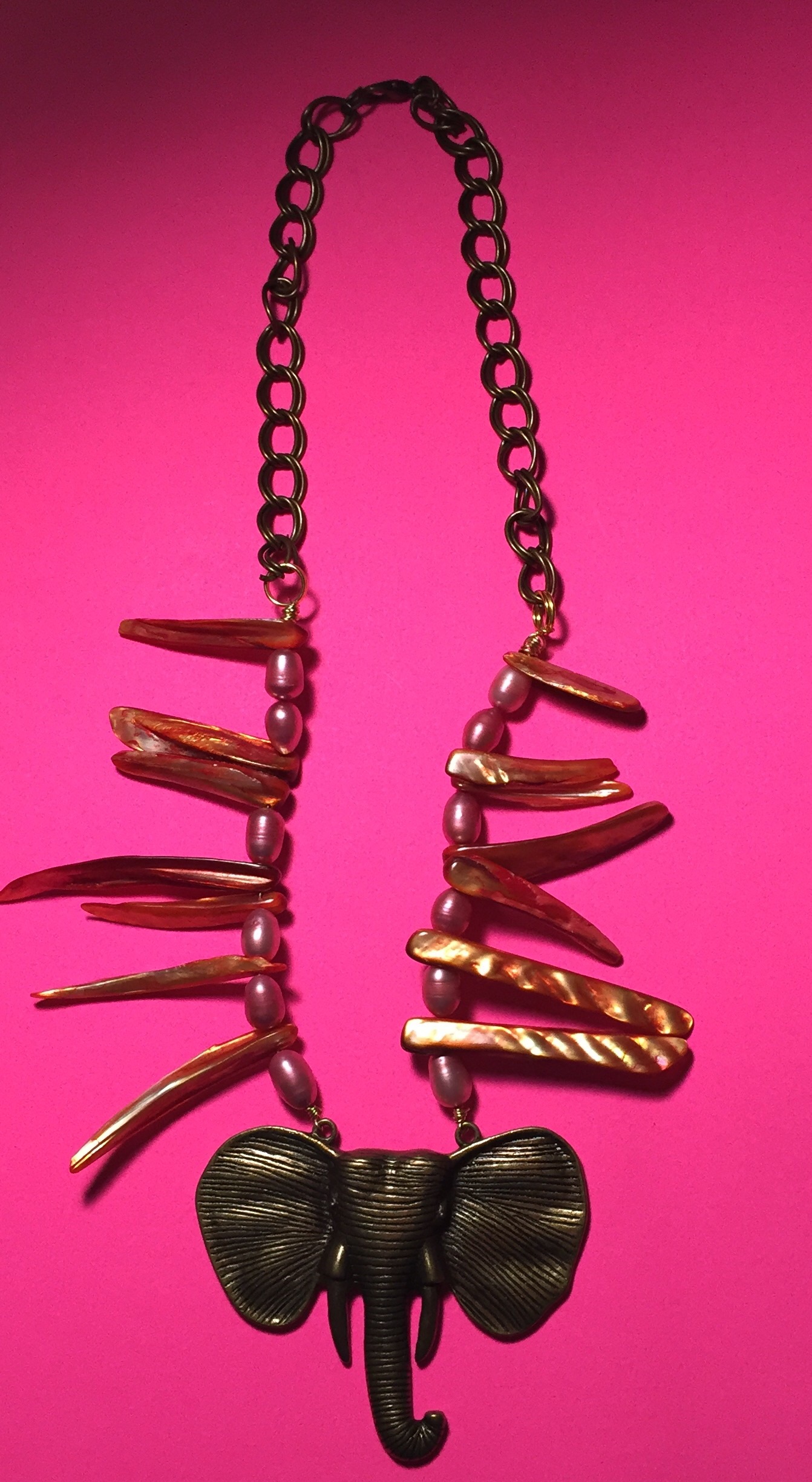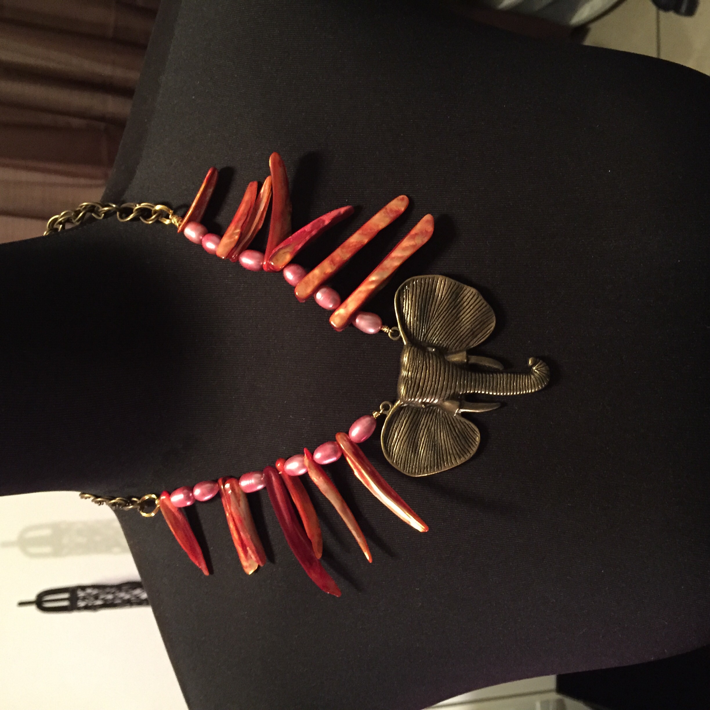-Beaded necklace -Metal chain and closure -Center piece charm -Custom Design -Hand made -One of a kind -Made as in picture