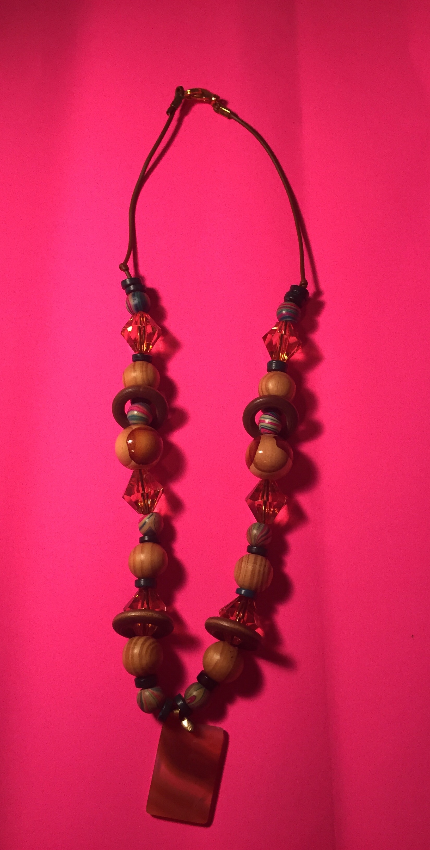 -Glass, wooden, and plastic beads -Center piece charm -Custom Design -Hand made -One of a kind -Made as in picture