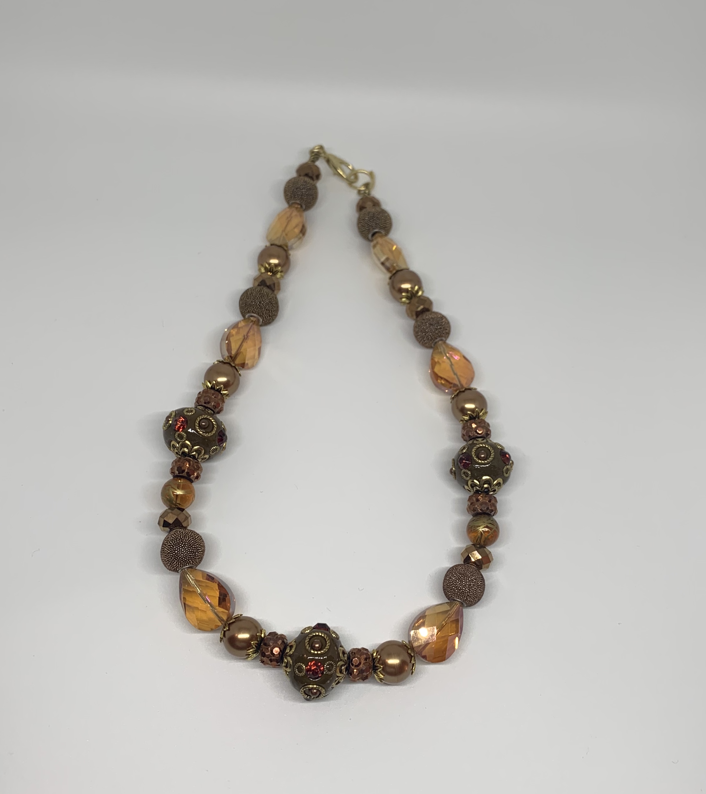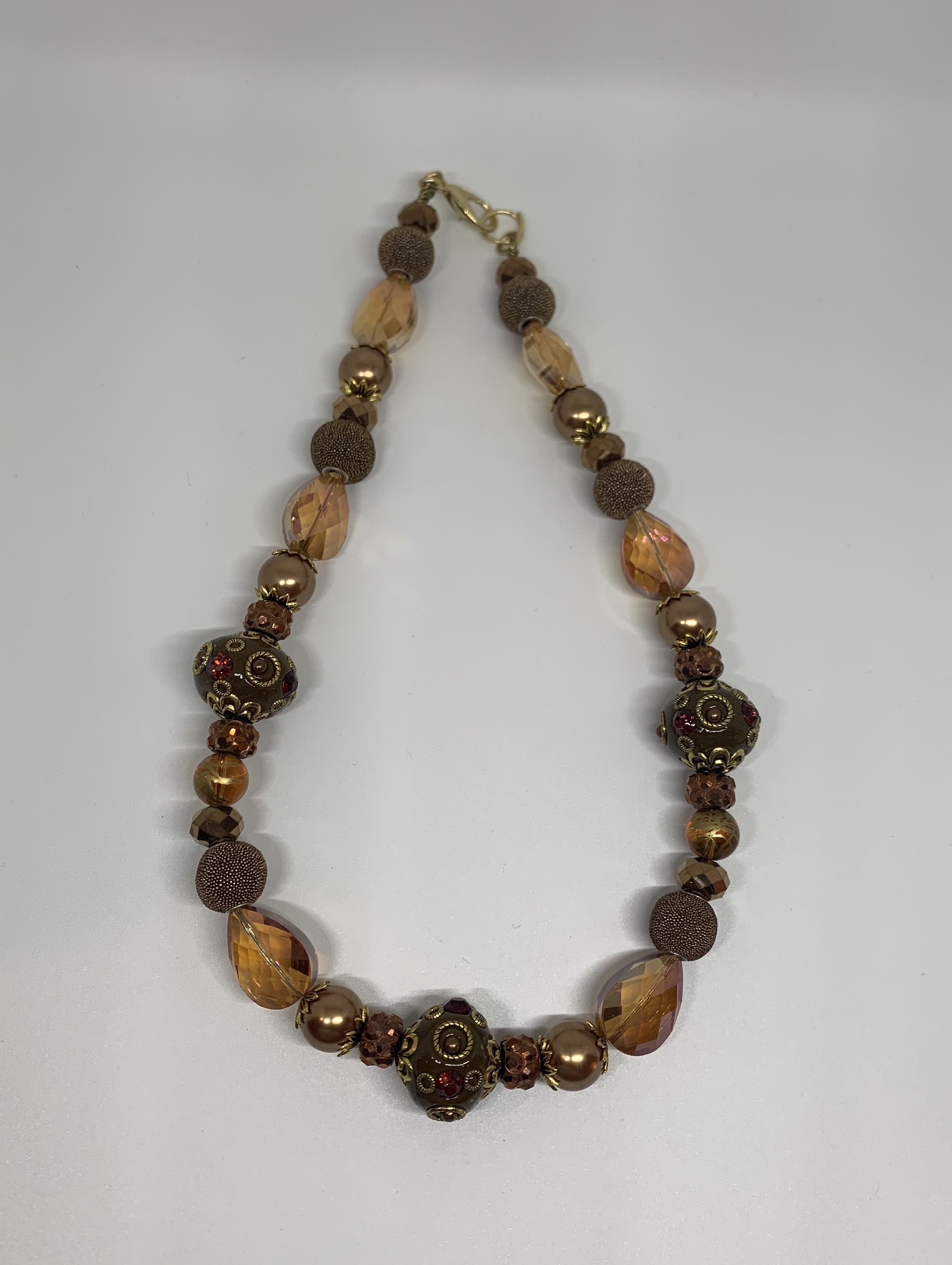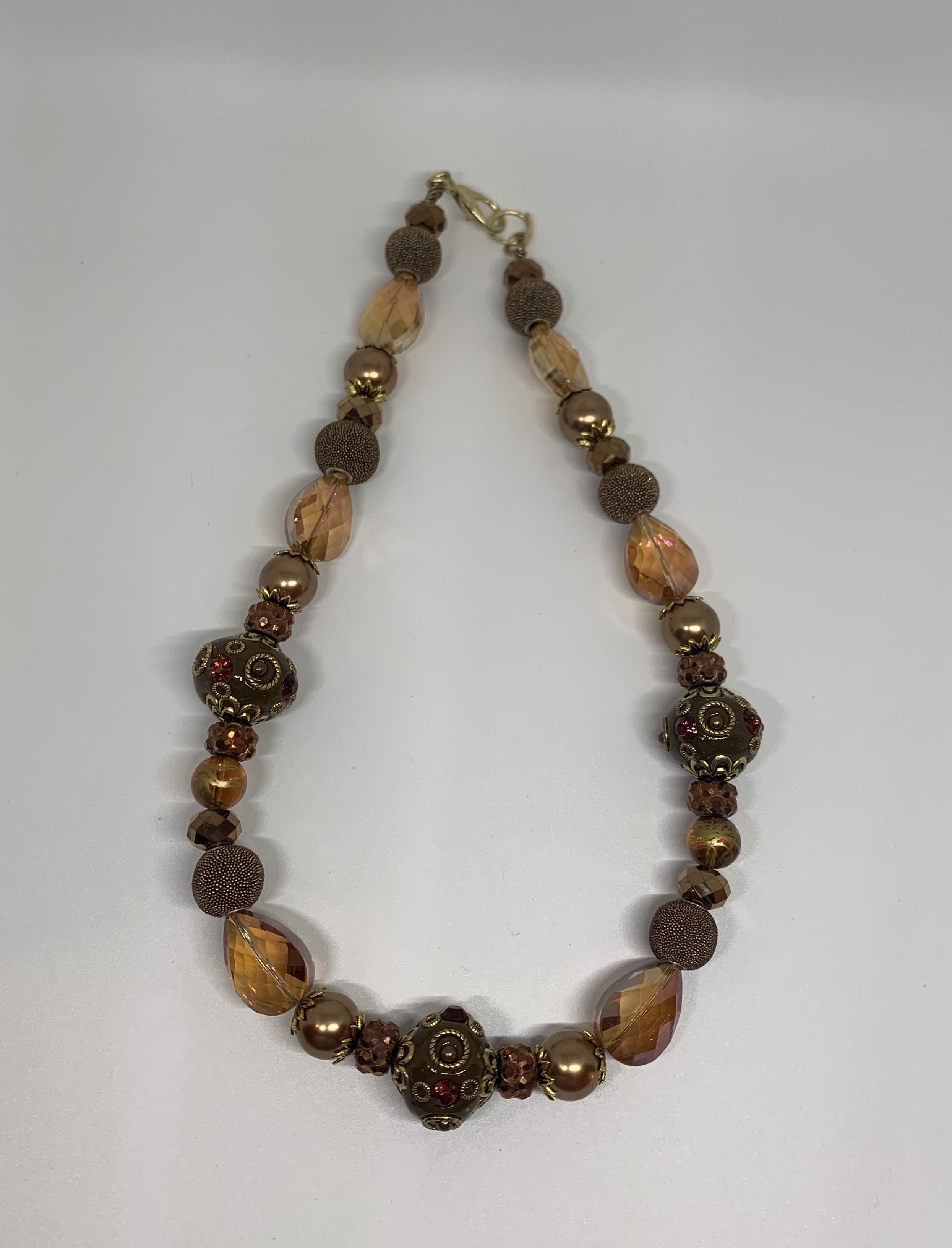 -Beaded necklace -Metal chain and closure - 23’’ -Adjustable -Embellished beads -Custom Design -Hand made -One of a kind -Made as in picture