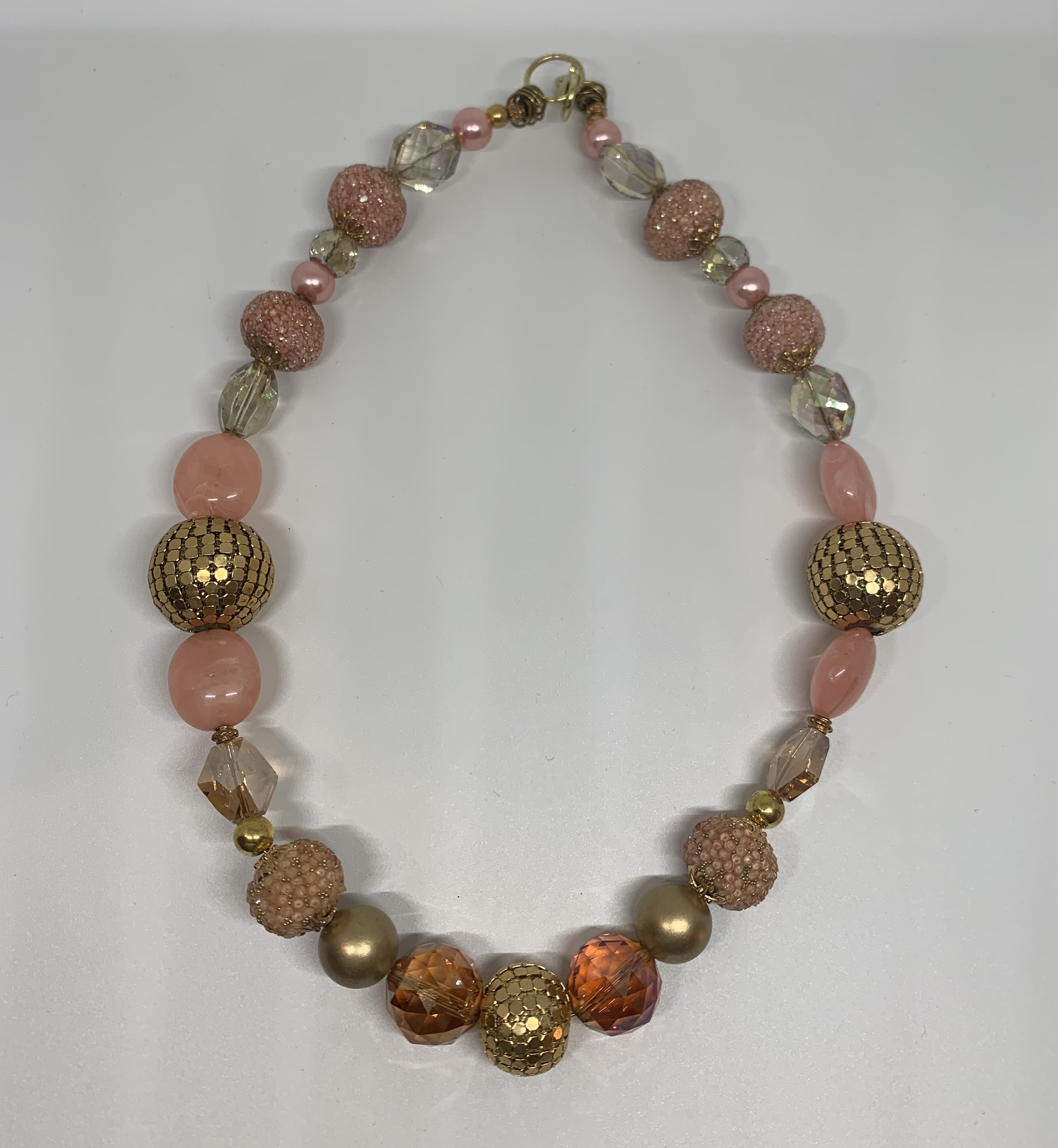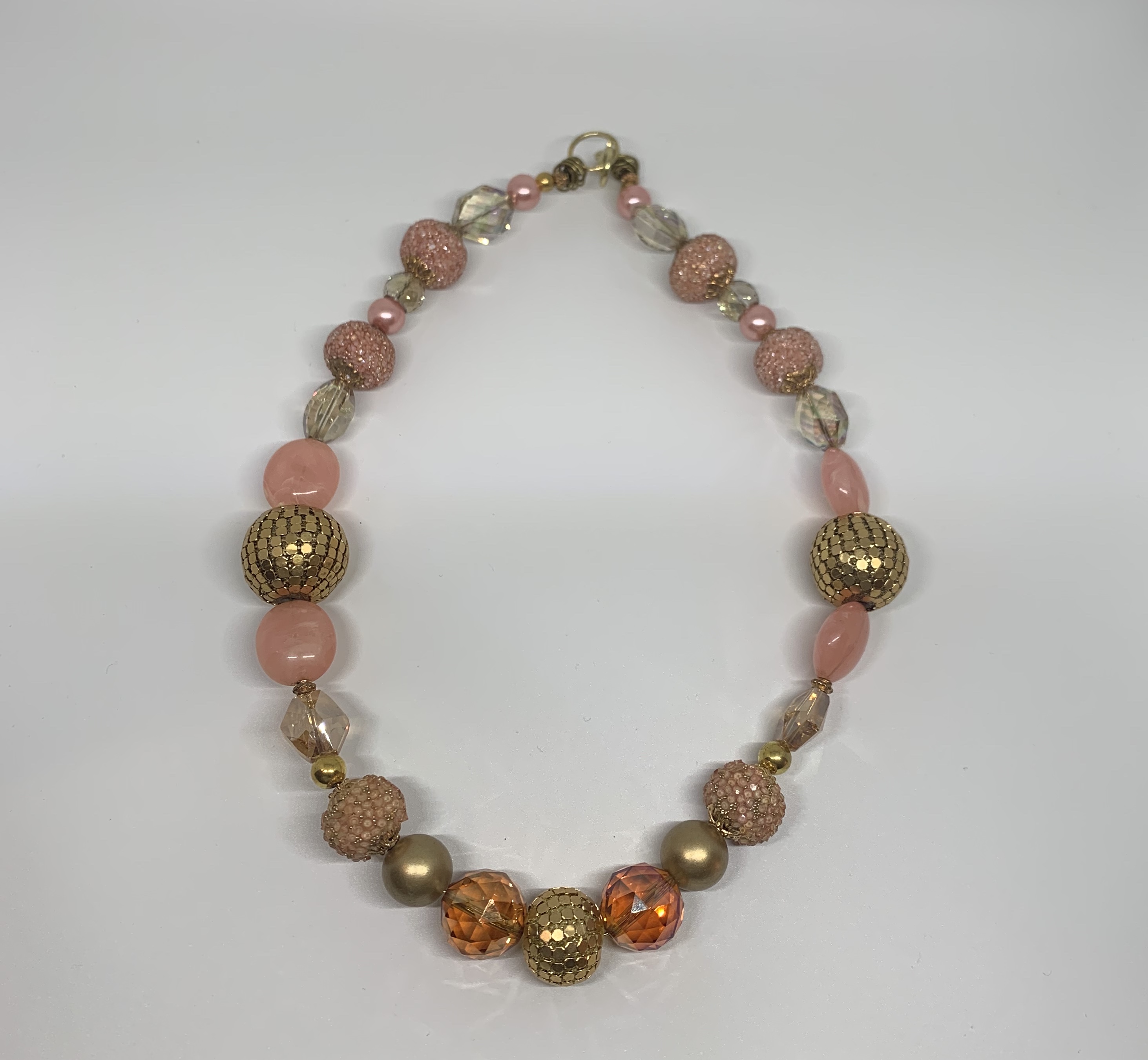 -Beaded necklace -Metal chain and closure - 23’’ -Adjustable -Embellished beads -Custom Design -Hand made -One of a kind -Made as in picture