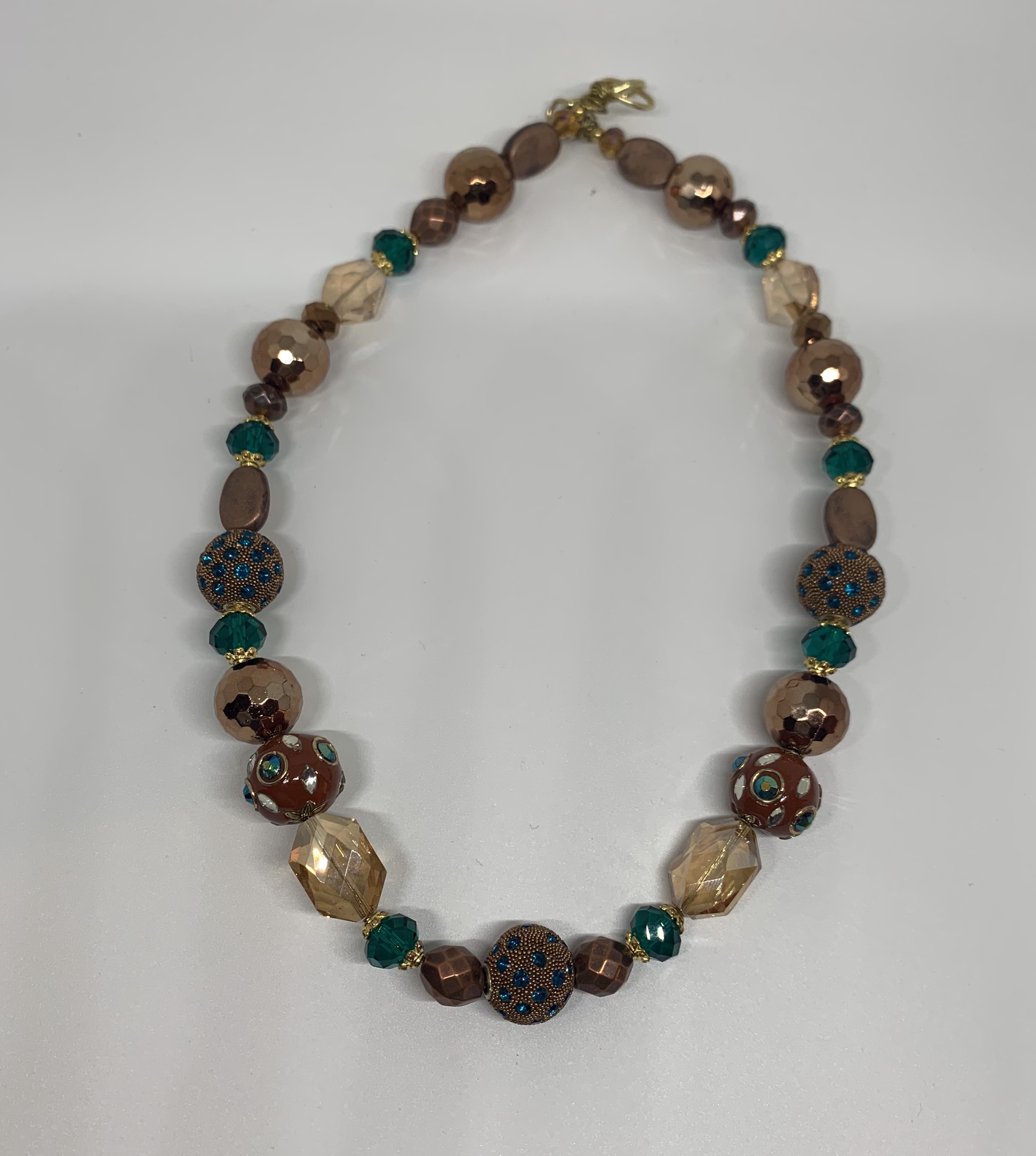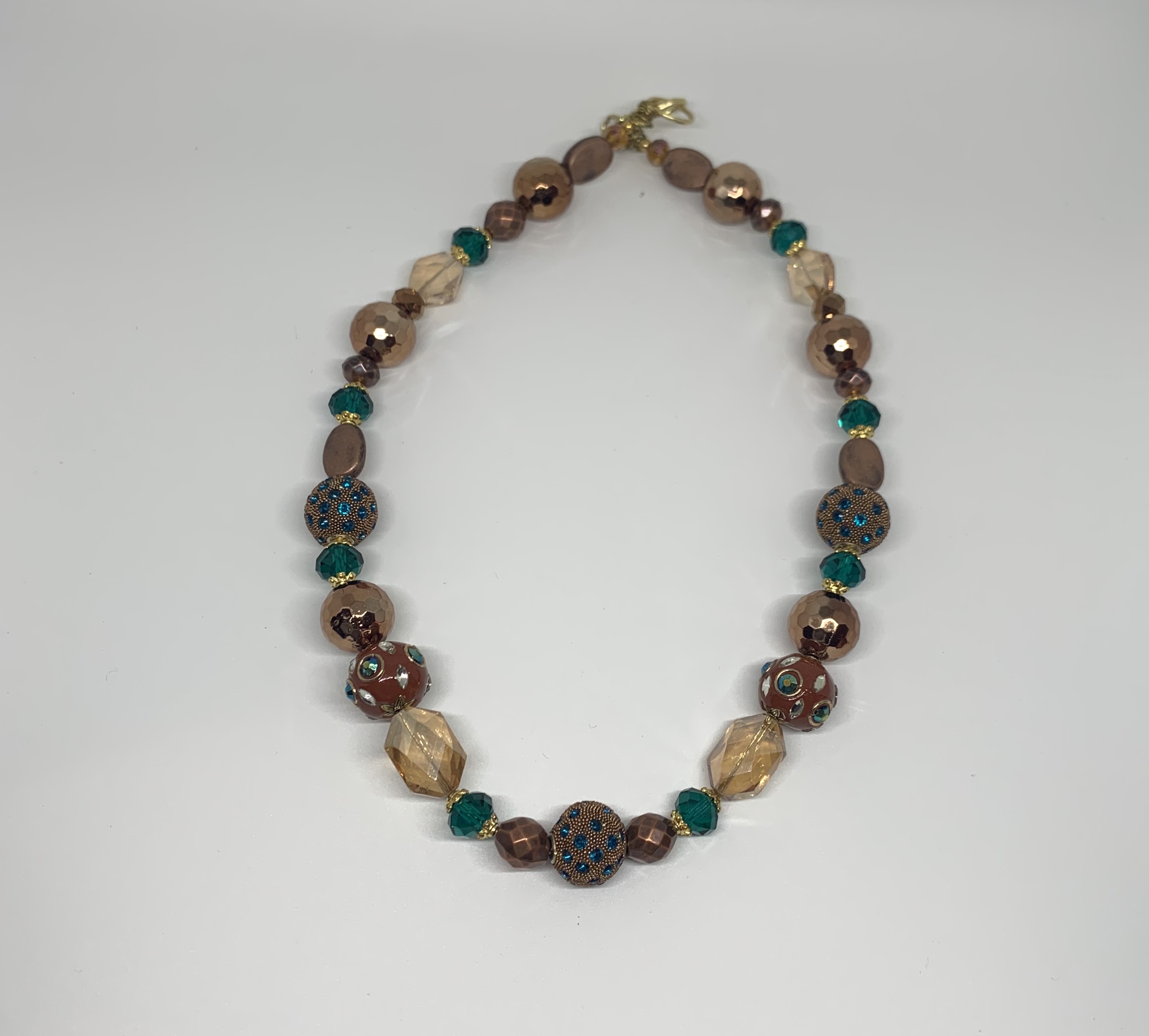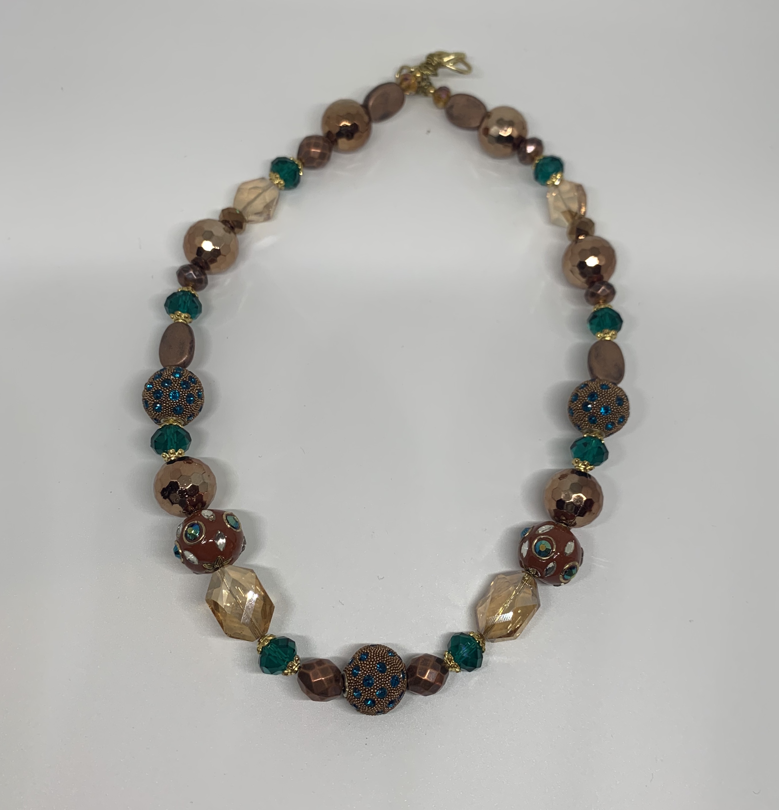 -Beaded necklace -Metal chain and closure - 23’’ -Adjustable -Embellished beads -Custom Design -Hand made -One of a kind -Made as in picture