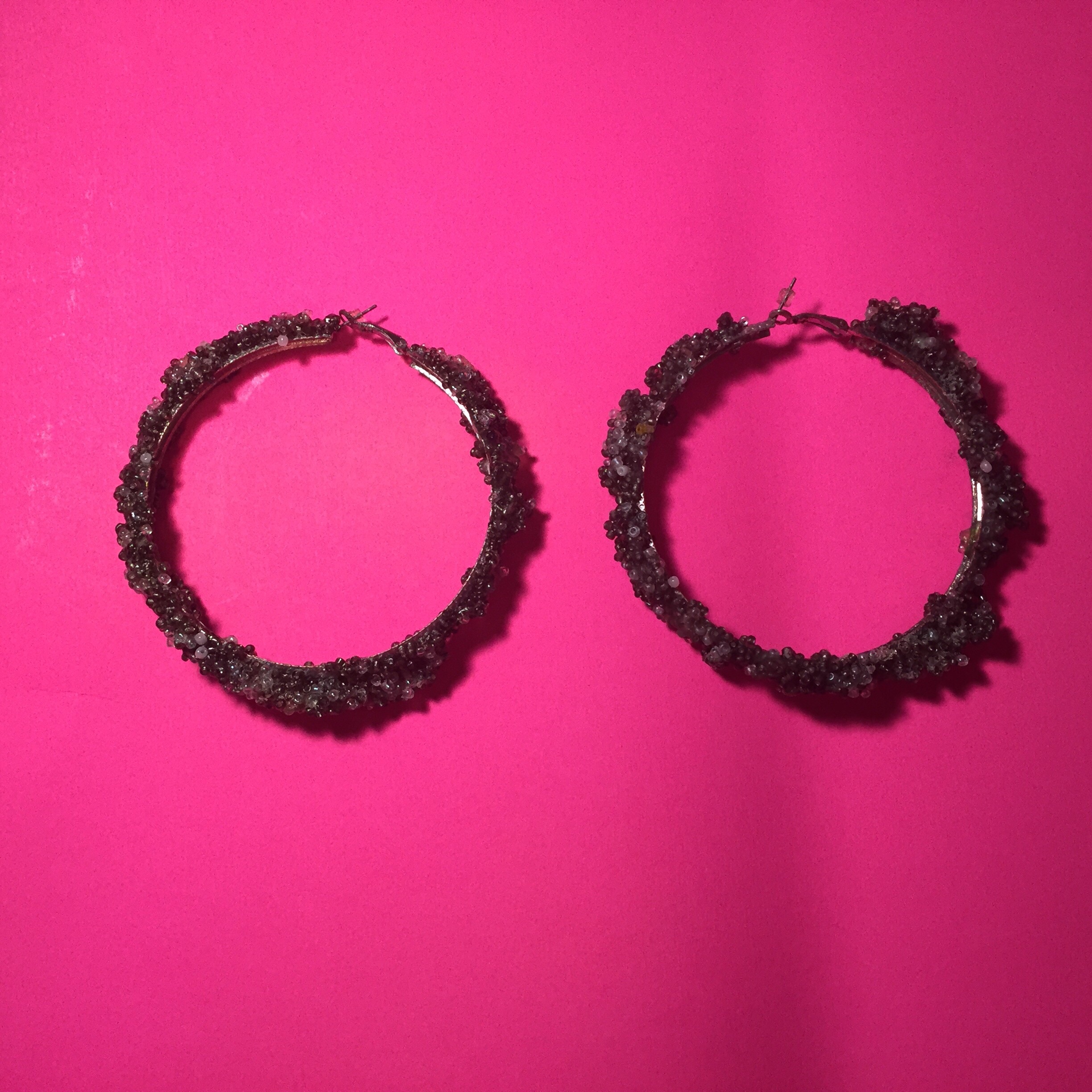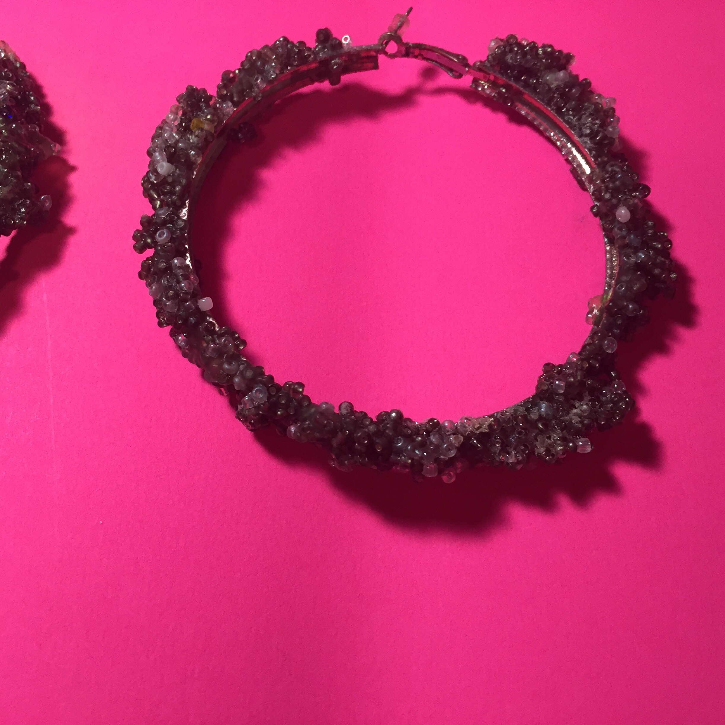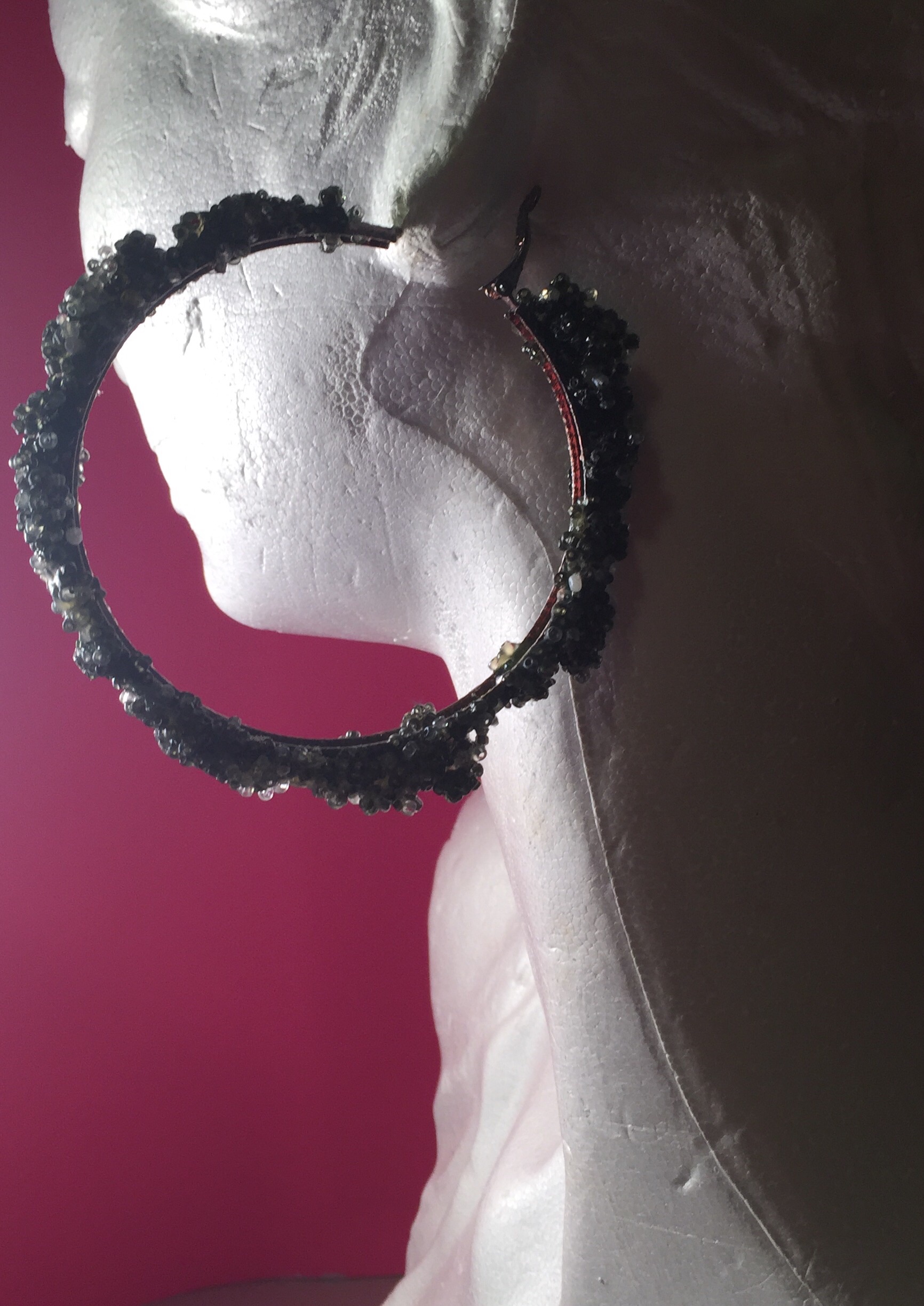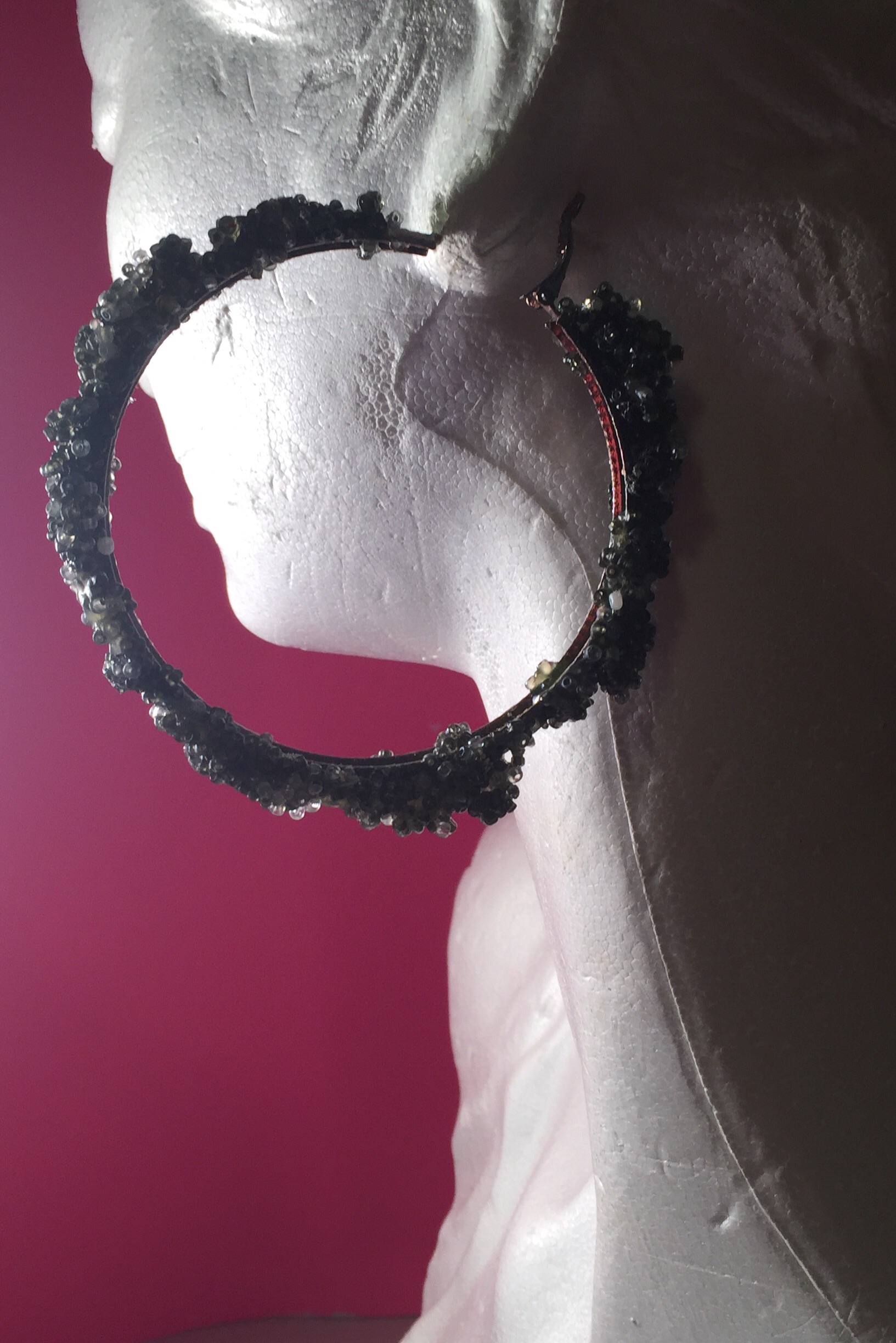-Glass black beaded earrings -Sliver hoop -Black color -Large size -Custom Design -Hand made -One of a kind -Made as in picture