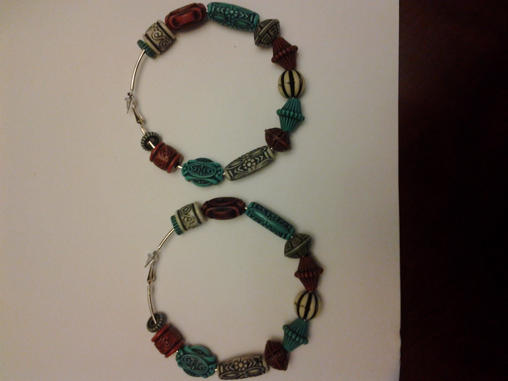 -Plastic beaded earrings -Sliver hoop -Varius color -Large size -Custom Design -Hand made -Made as in picture -Made as in picture -Made as in picture