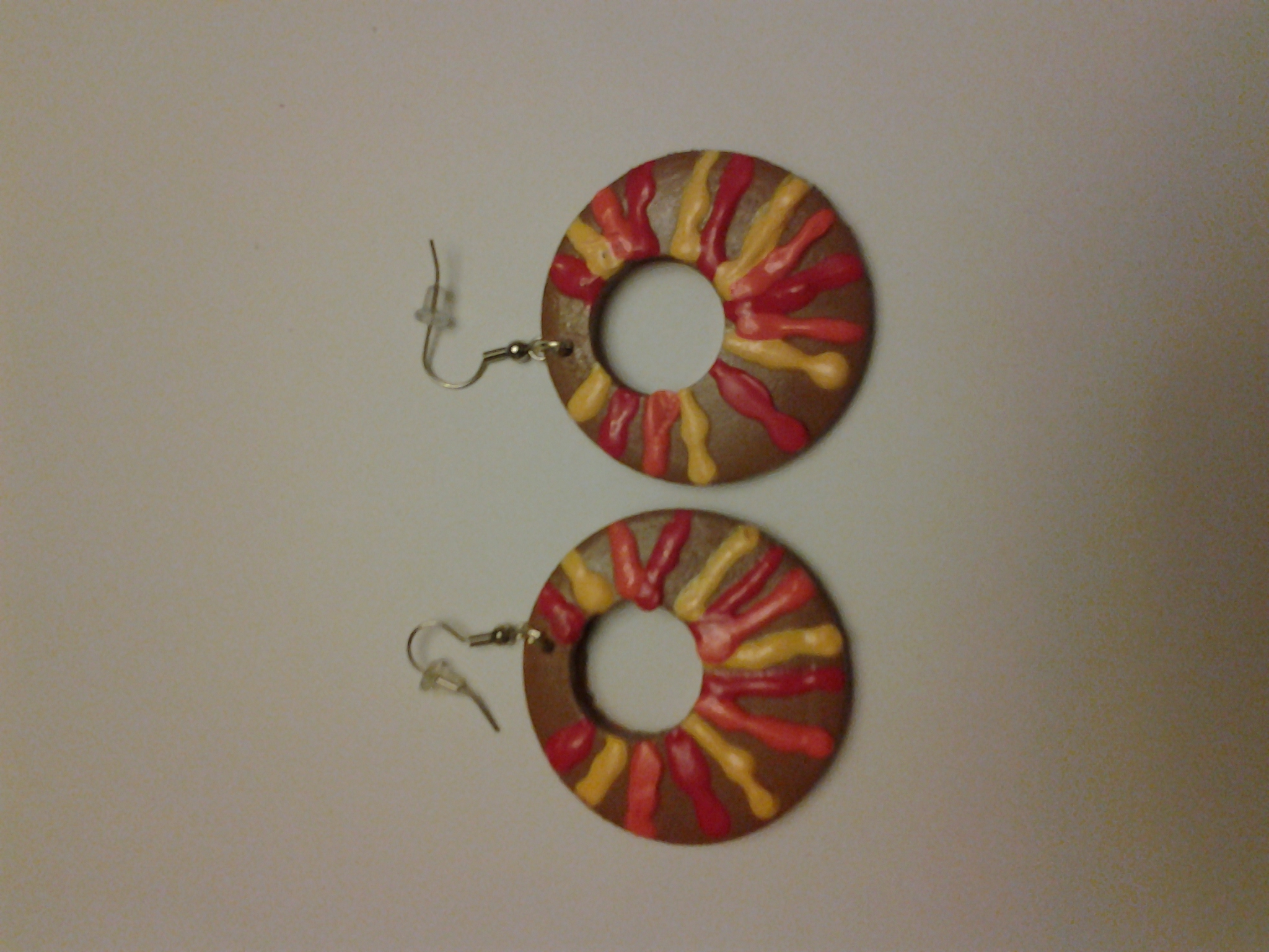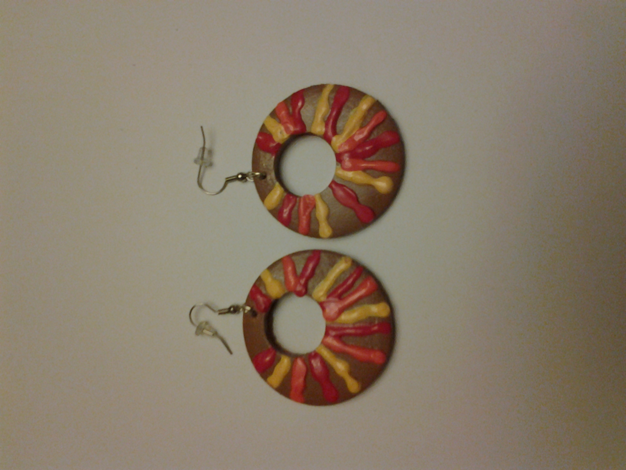 Wooden custom design painted stud earrings. Painted on both sides. Handmade, one of a kind.