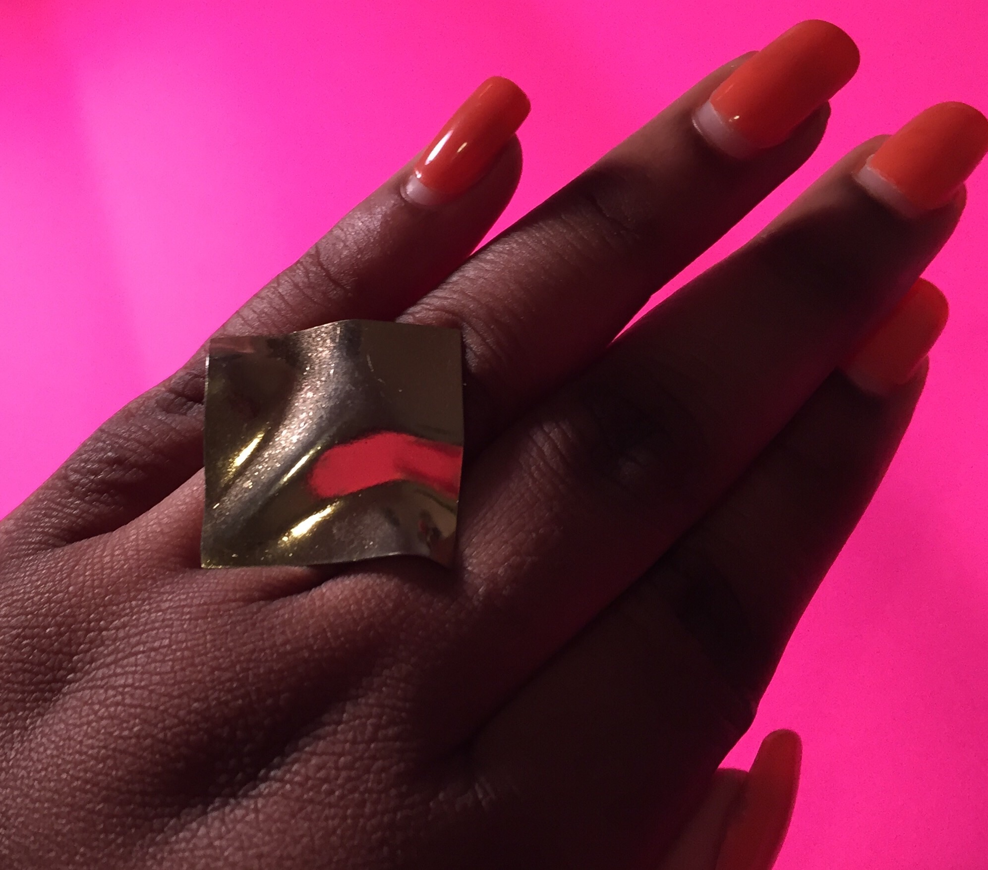 -Adjustable,vintage pendent, gold metal base fashion ring. -One size fits all. -One of a kind piece. -Custom and handmade.