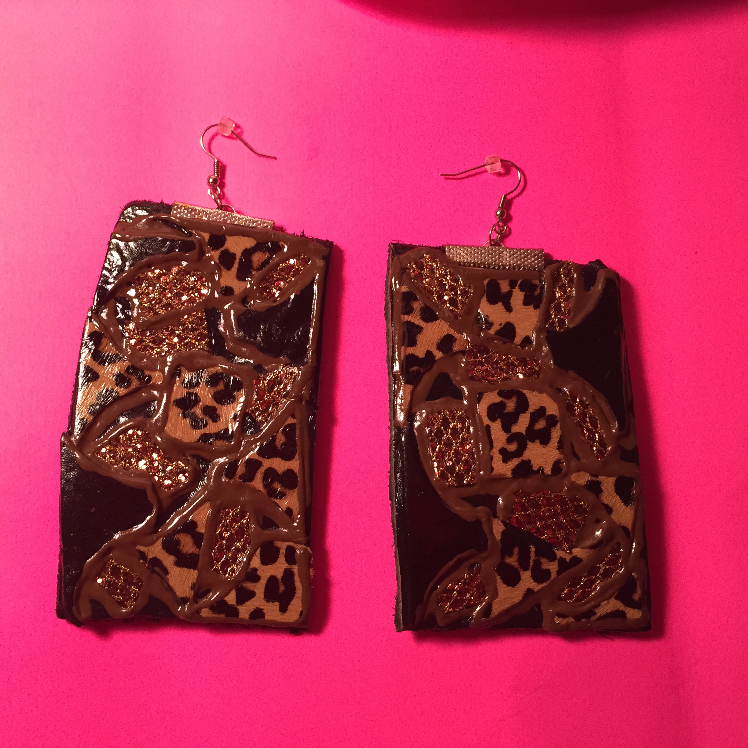 -Leather painted earrings -Custom Design -Hand made -One of a kind - Made as in picture