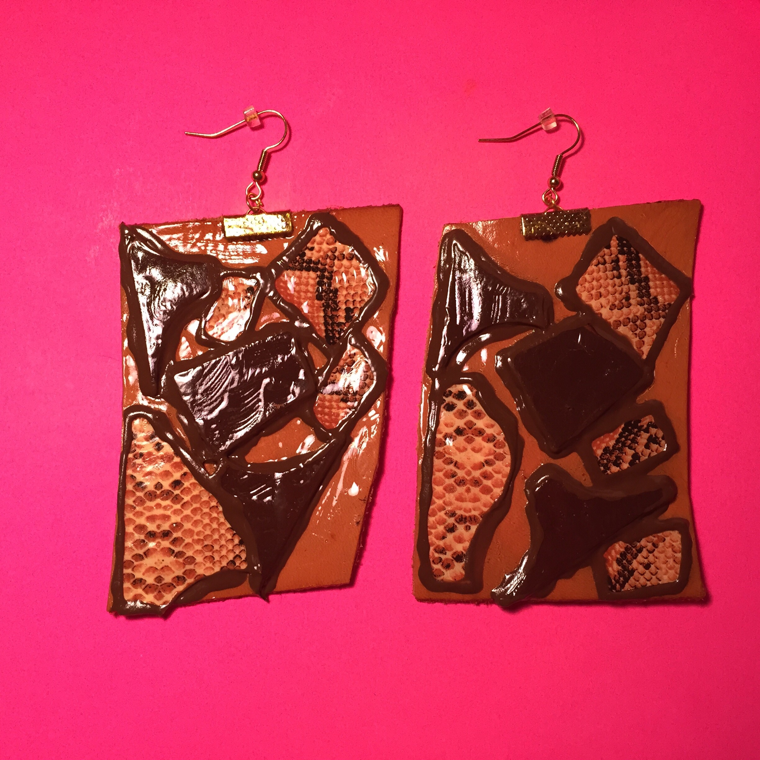 -Leather painted earrings -Custom Design -Hand made -One of a kind - Made as in picture