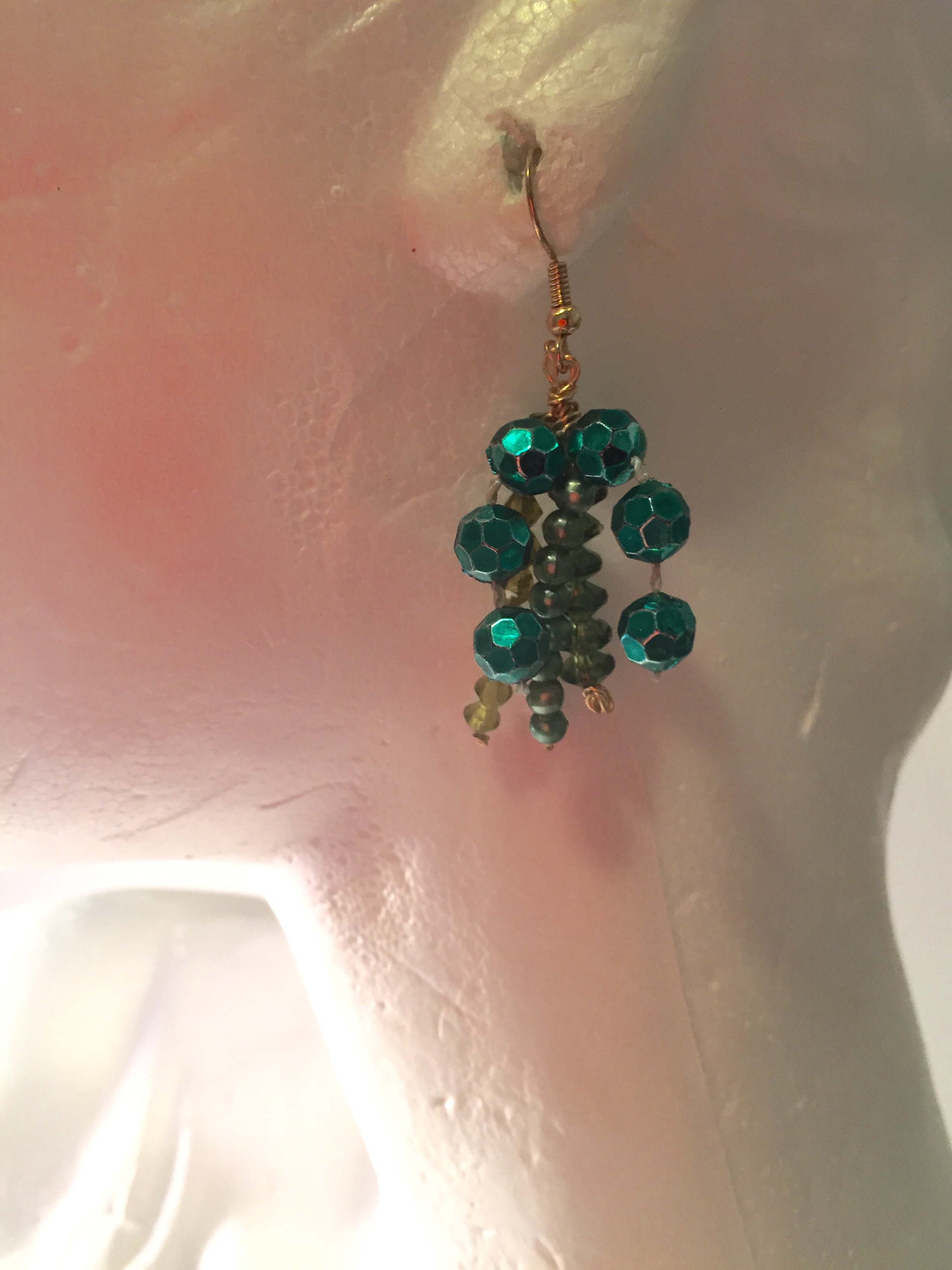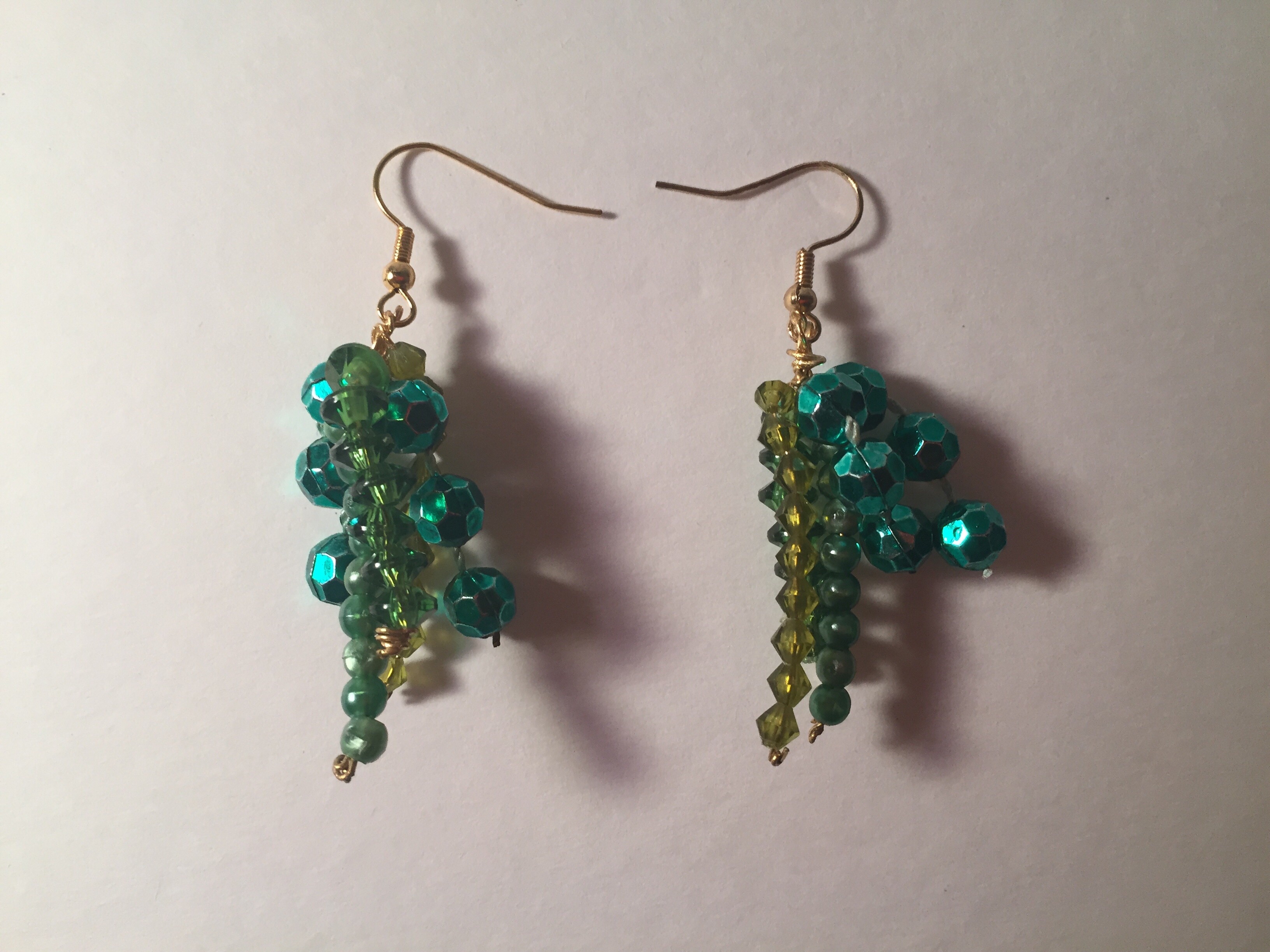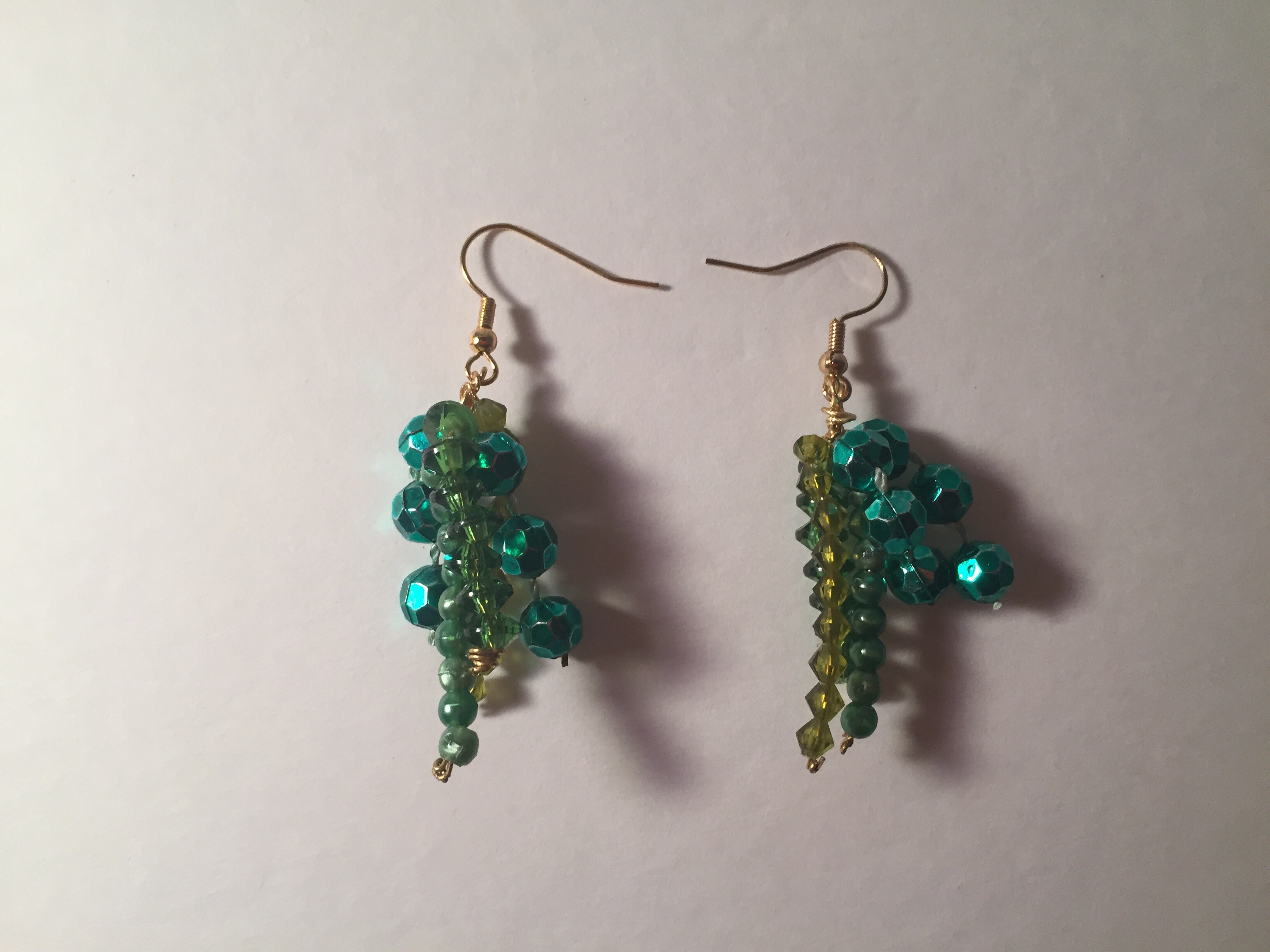-Beaded drop earrings -Green -Gold nickel free metal hook -2" long -Custom Design -Hand made -One of a kind -Made as in picture