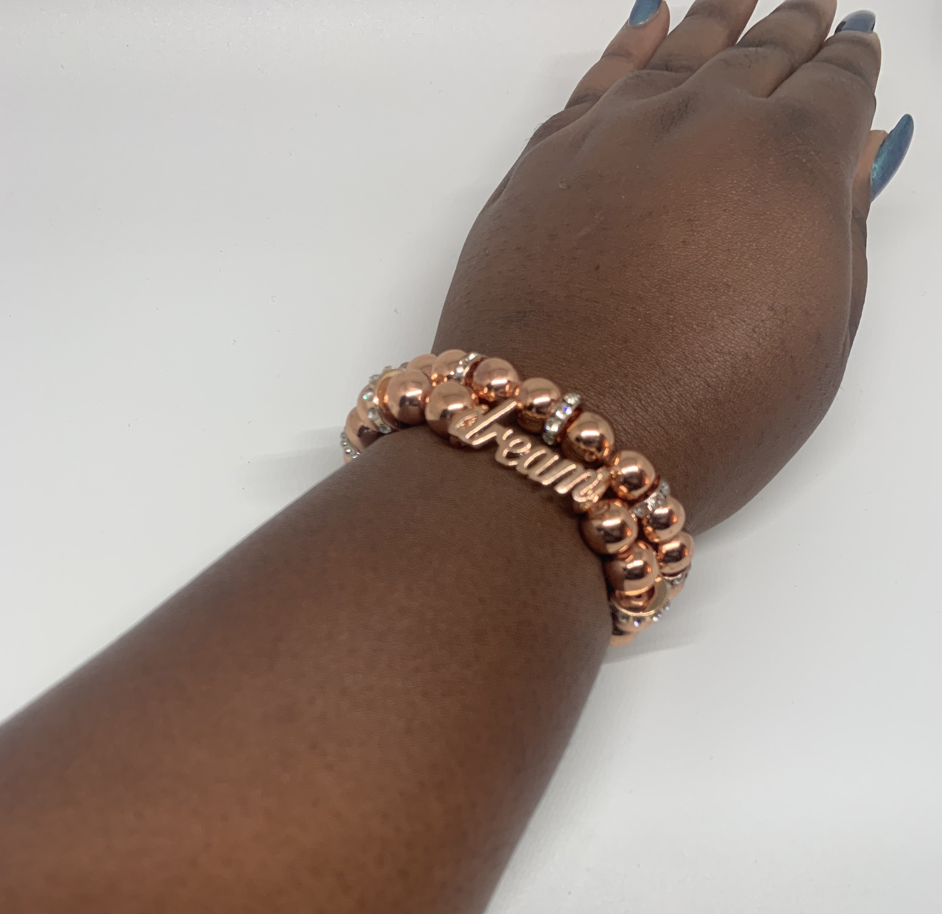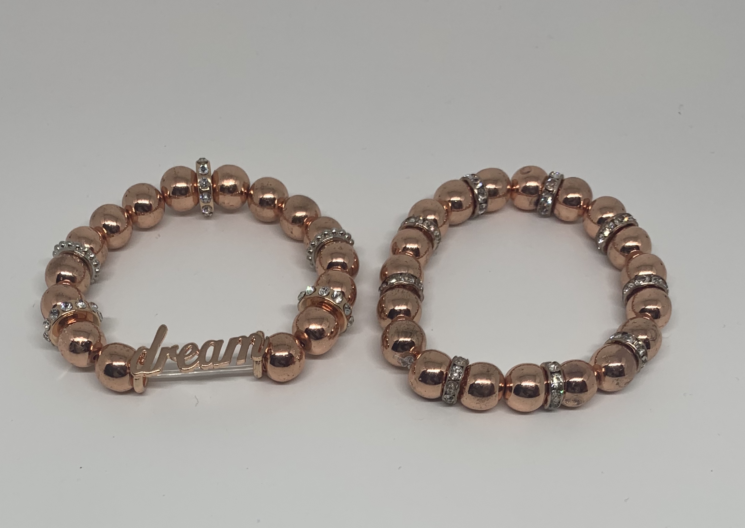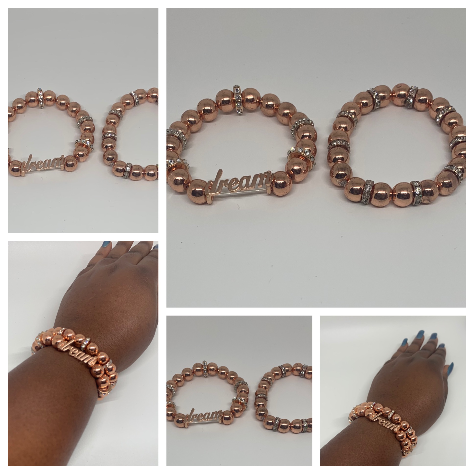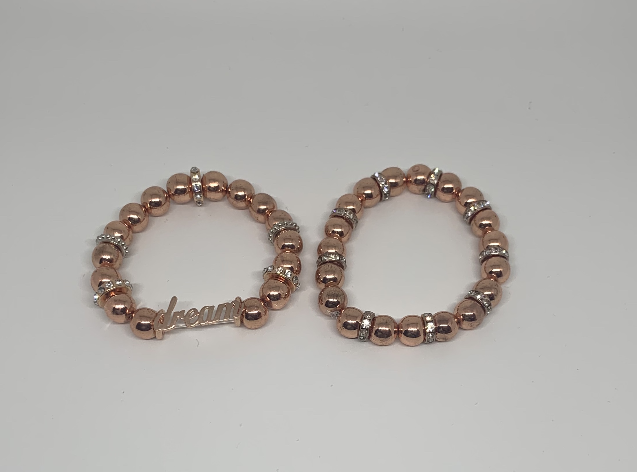 Dream Rose Gold Beaded Stretch Bracelet Set