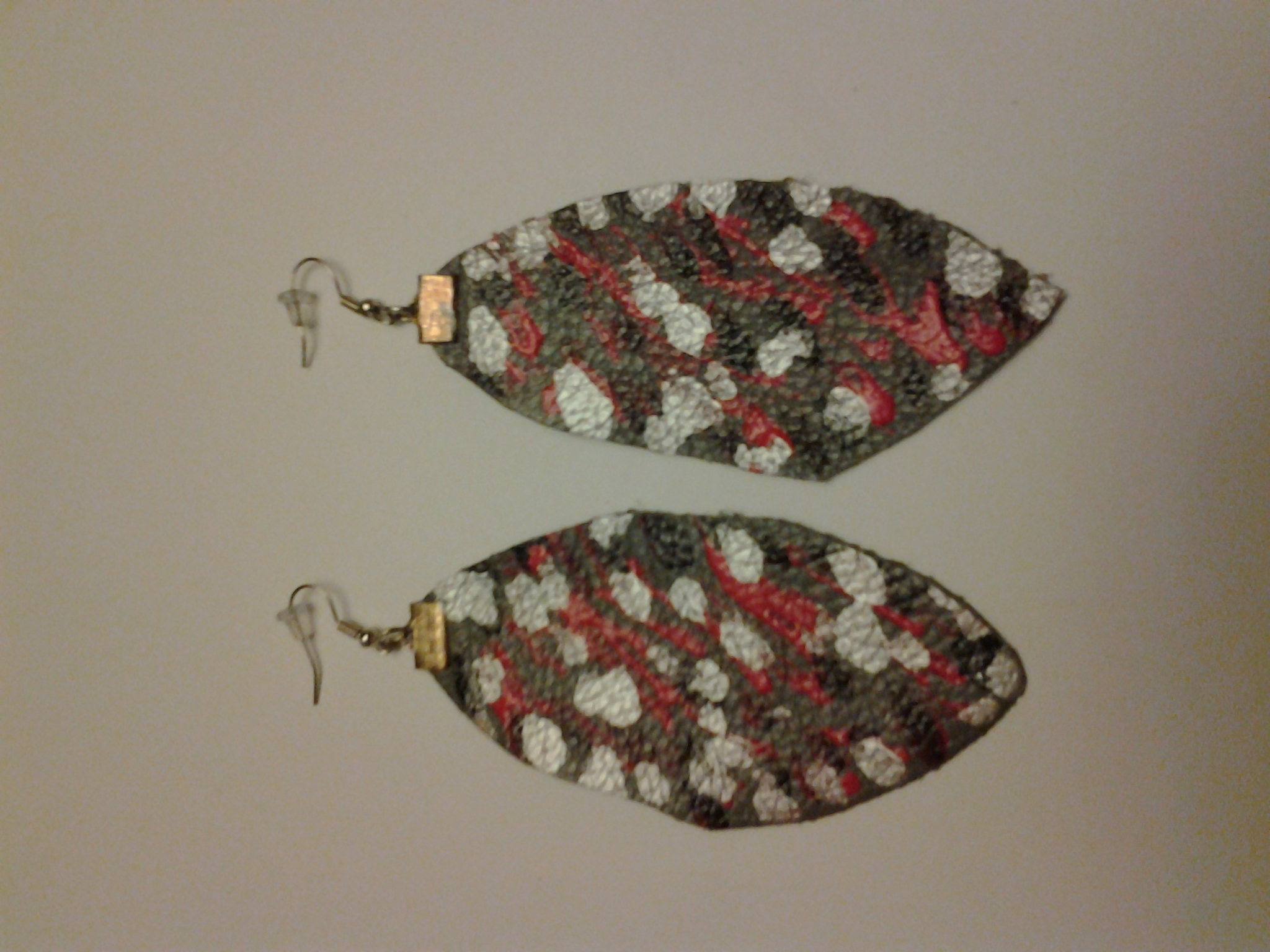 -Leather painted earrings -Custom Design -Hand made -One of a kind - Made as in picture