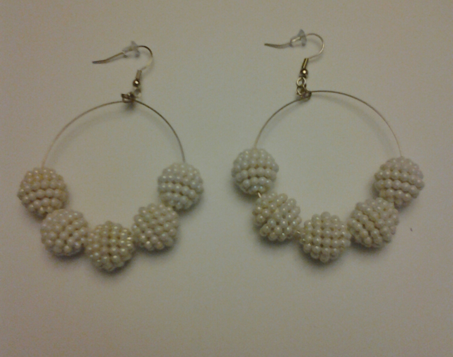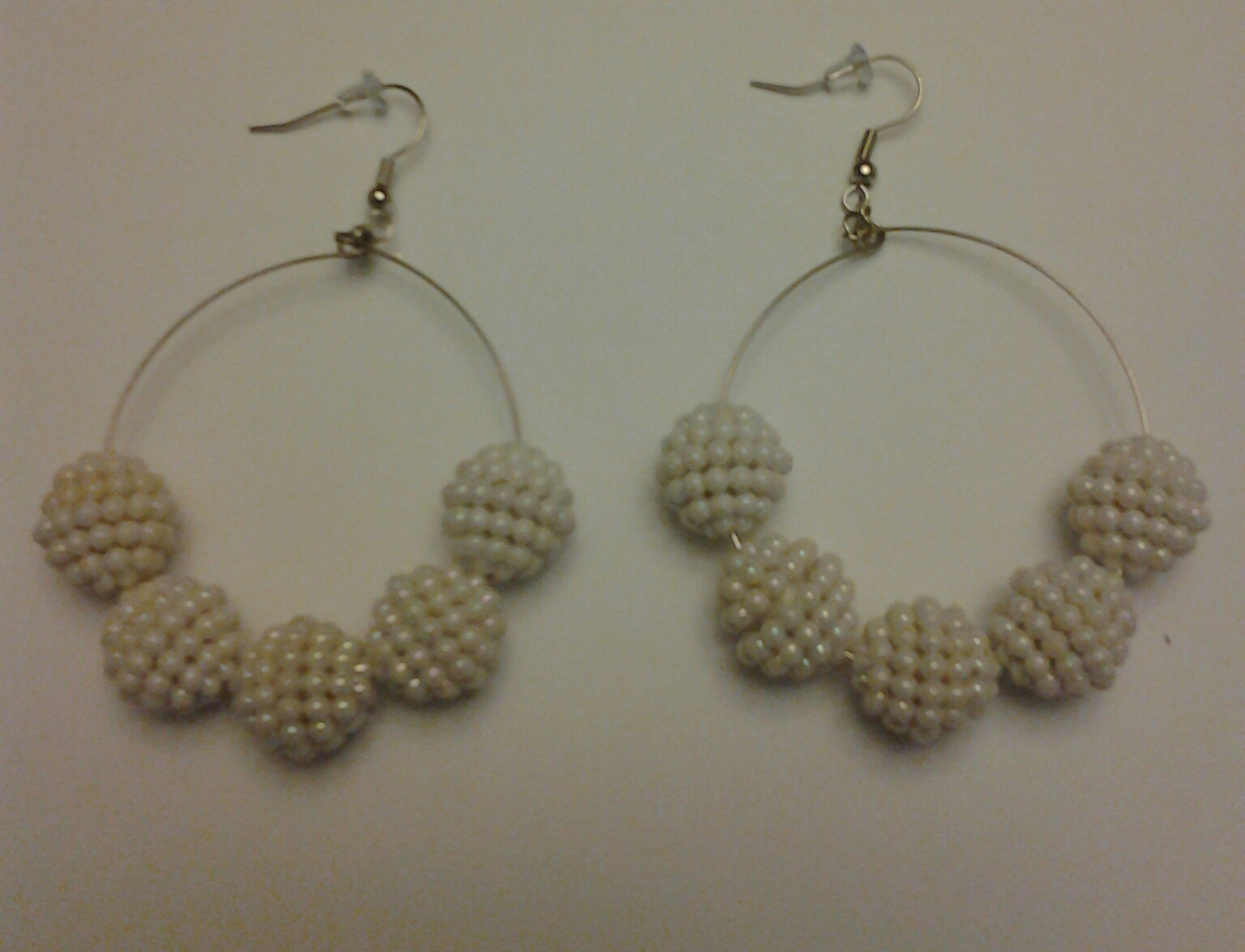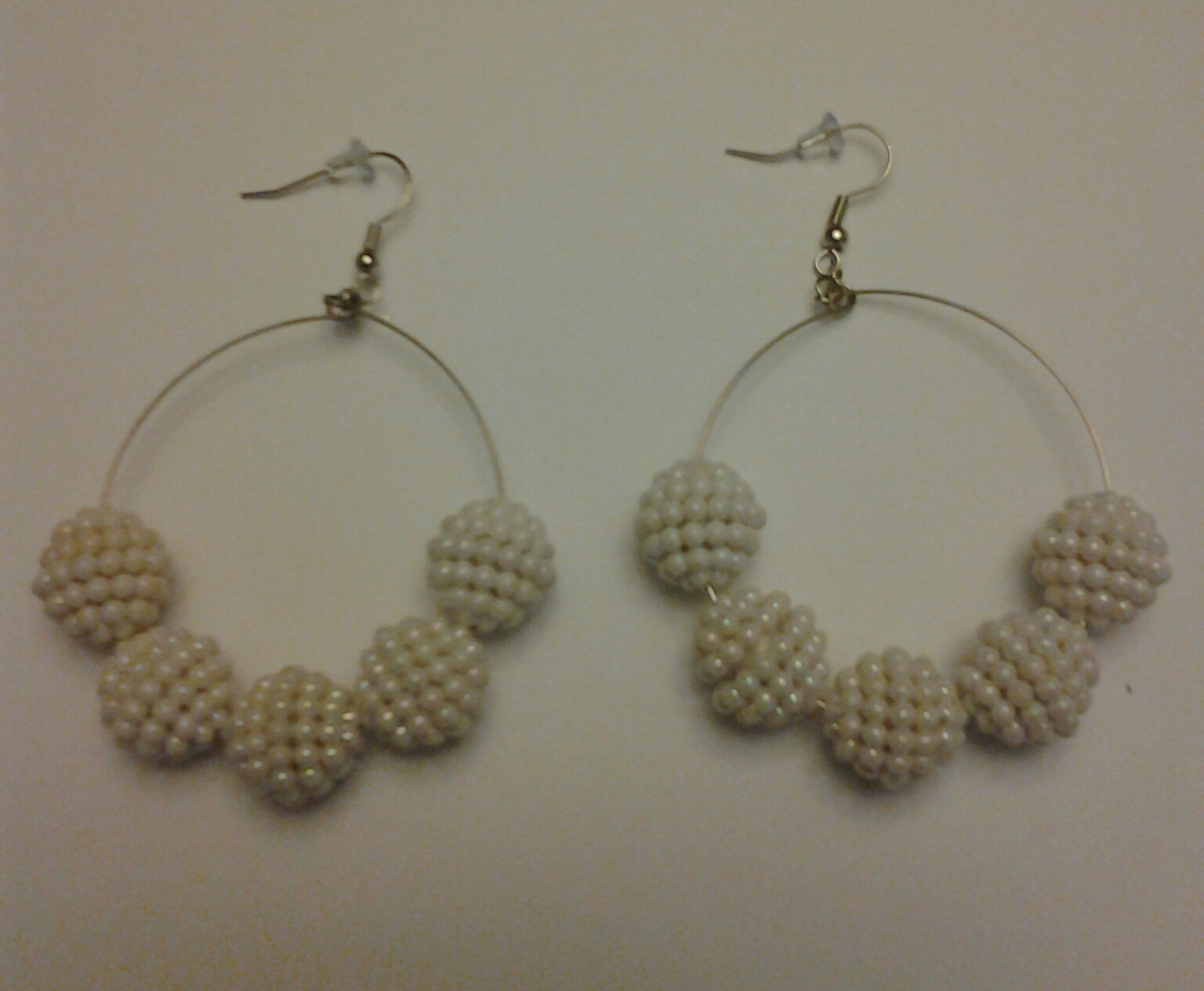 -Plastic beads -Sliver wire and hook -White -Handmade -Made as in picture
