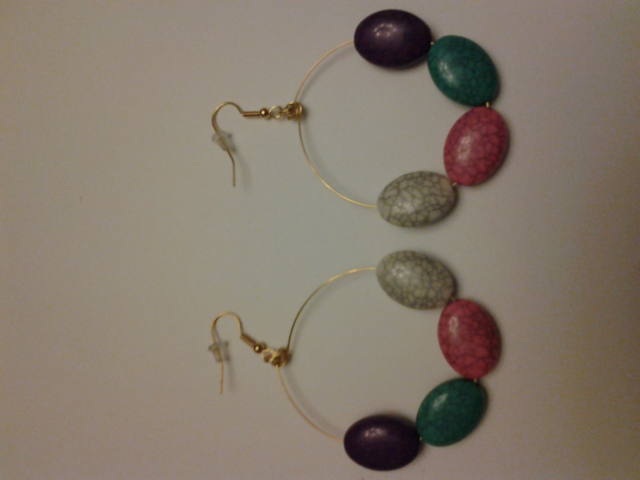 -Plastic beads -Gold wire and hook -White, pink, turquoise, and purple -Handmade -Made as in picture