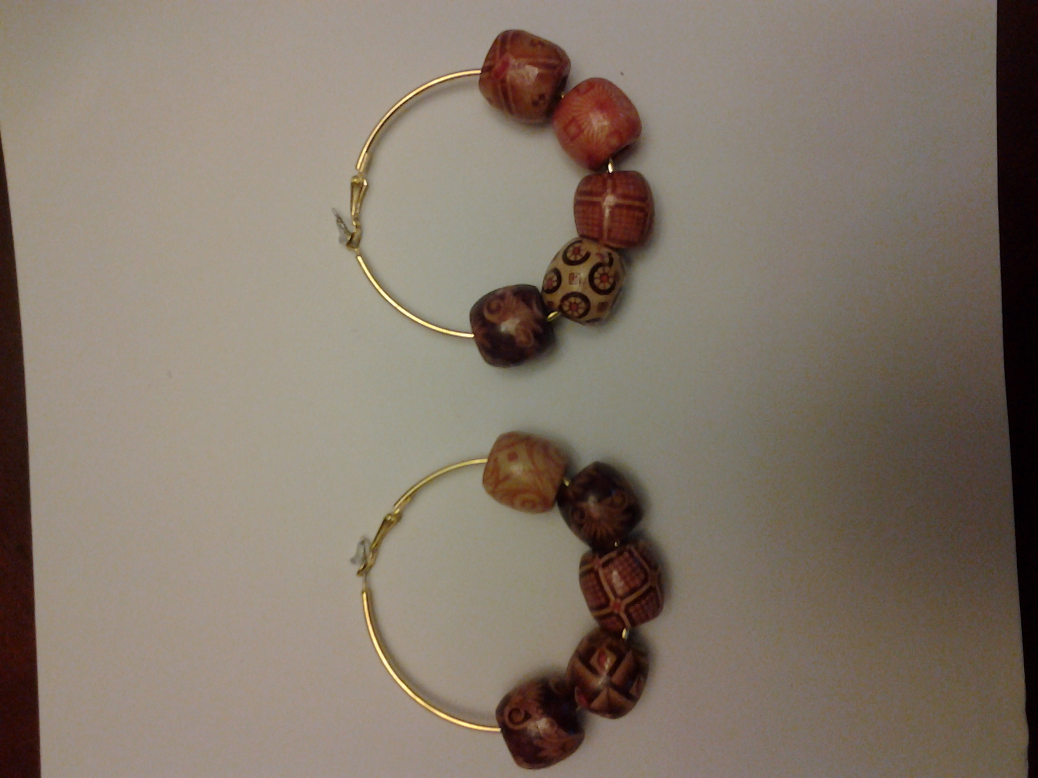 -Wooden beaded earrings -Gold hoop -Various color -Medium size -Custom Design -Hand made -Made as in picture -Made as in picture